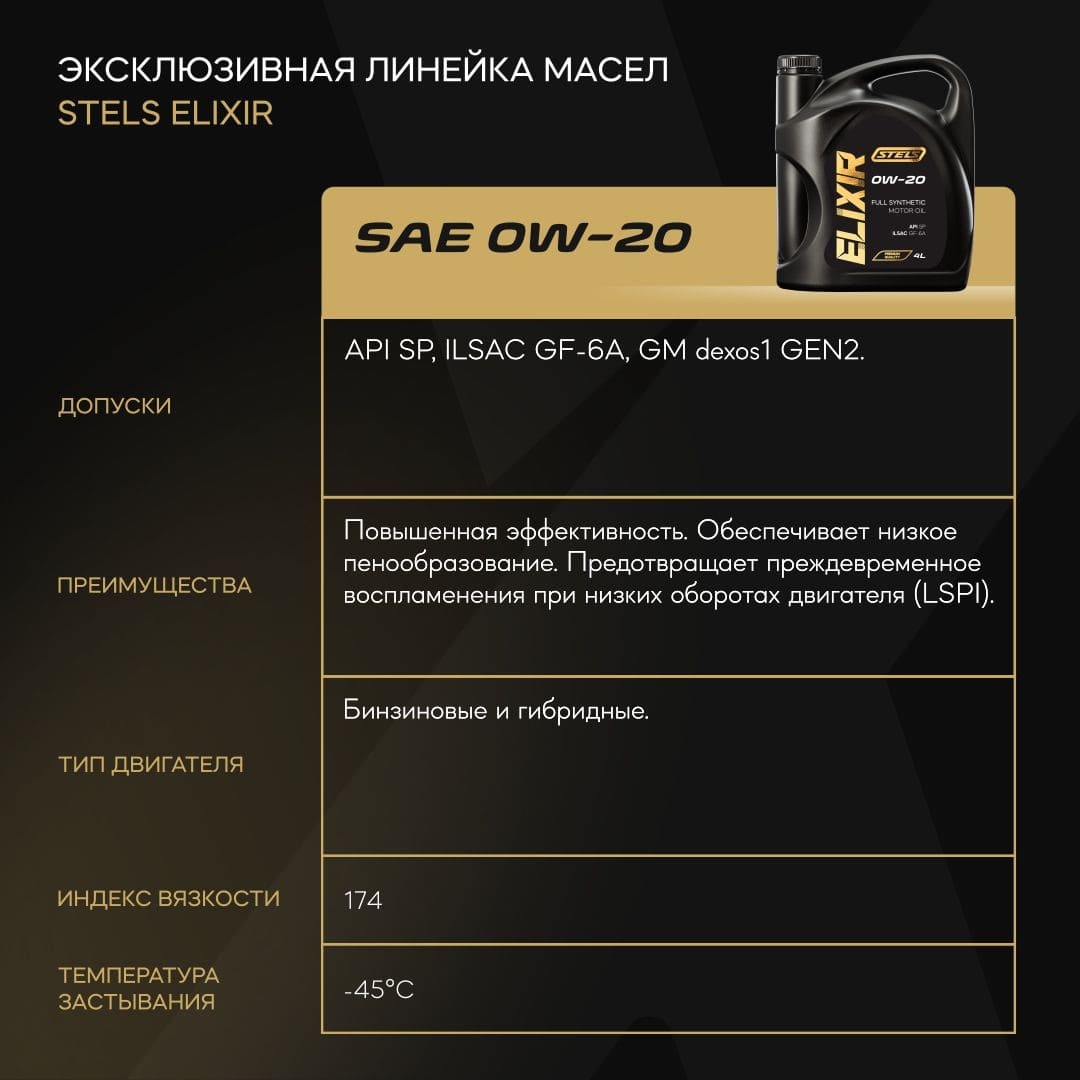 Масло моторное STELS Elixir SAE 0W20 4л