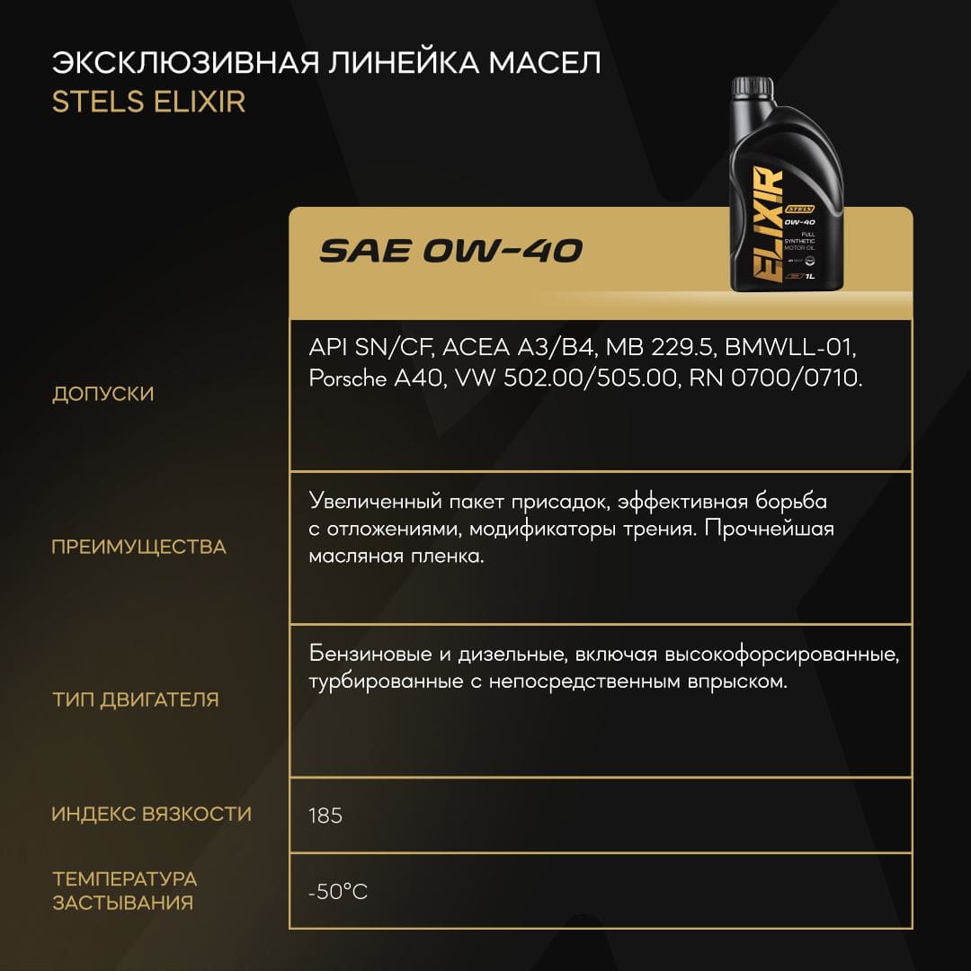 Масло моторное STELS Elixir SAE 0W40 1л